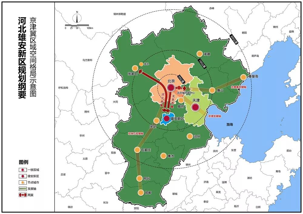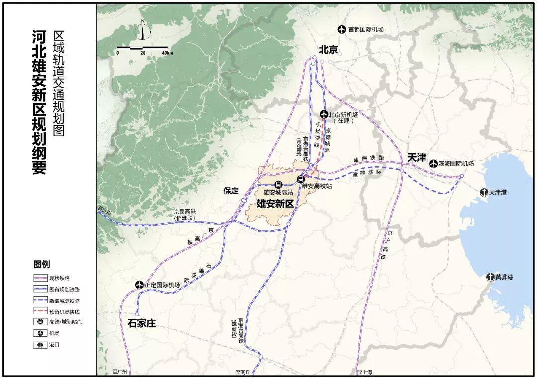 实现新区高效融入“轨道上的京津冀”,20分钟到北京新机场,30分钟到北京、天津,60分钟到石家庄。