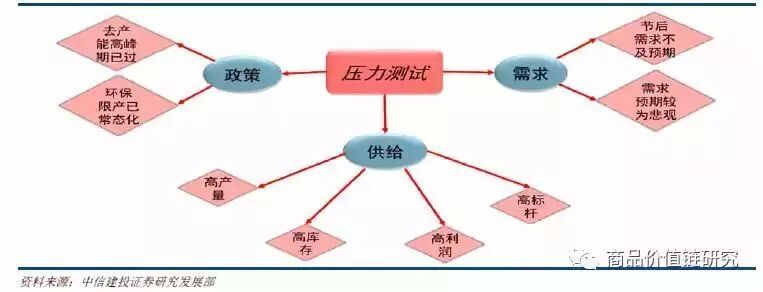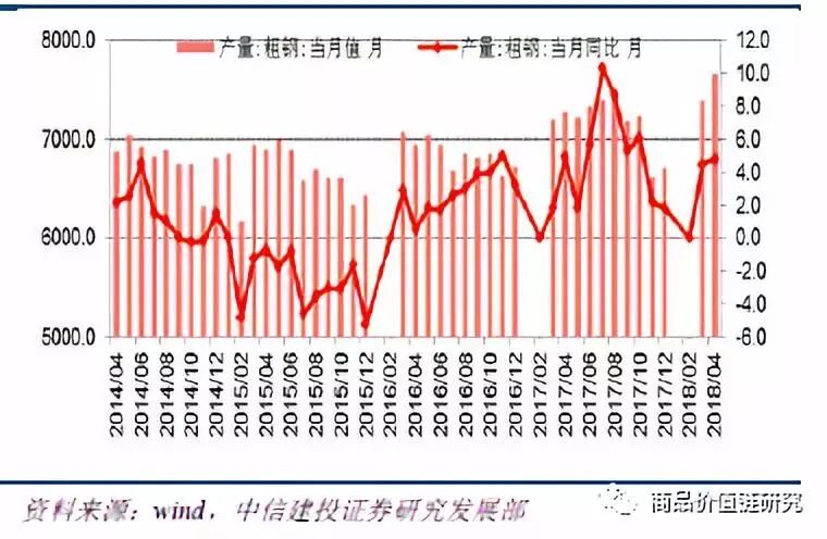 年初以来的宏观预期悲观的数据兑现不断推迟,另一方面从企业应收和利润增速、制造业投资、房地产库存、全球经济增长预期、钢材出口等数据来看,下半年钢材需求保持平稳的概率依旧很大。即便出现一场年产量5000万吨量级的产量下滑,钢铁行业仍有望维持高盈利。 2018年是钢铁行业和钢铁股的压力测试年。如果需求下滑,钢铁还能不能保持高盈利是核心测试命题。但对于18年钢材需求下滑的测试场景能否出现,我们并不能确认。 固然,从“信用-杠杆-增长”的短经济分析框架下看,2018年“紧信用+去杠杆”的政策组合从逻辑上会对经济造成负面压力。但一方面年初以来的宏观预期悲观的数据兑现不断推迟,另一方面从企业应收和利润增速、制造业投资、房地产库存、全球经济增长预期、钢材出口等数据来看,我们认为下半年钢材需求保持平稳的概率依旧很大。如此钢材需求下滑的测试场景未出现,钢铁行业将维持高盈利,全年的盈利更是有望全面超过2017年。 如果需求下滑的测试场景出现,钢铁行业将探明盈利底部。我们认为即便出现一场年产量5000万吨量级的产量下滑,钢铁行业仍有望维持高盈利。核心逻辑在于目前钢铁行业已处于总产能受限但单位产能供给弹性上升的阶段,提高入炉铁矿石品位和增加转炉废钢比等提高钢产量的方法被充分挖掘,这就意味着需求下滑,可以朝着反方向去减少产量来对冲盈利下滑压力。 更为关键的是目前钢铁的供给曲线是“盈利高的长流程供给相对无弹性+盈利低的短流程供给有弹性”,需求下滑首先冲击盈利低的短流程,这就意味着钢价和盈利不用下滑太多就可以重新建立供需平衡。得益于转炉废钢使用比例和高炉铁矿石品味的使用弹性,我们保守估计供给有弹性的区间宽度在6000-8000万吨。因此,即便出现一场5000万吨量级的产量下降,钢铁行业仍有望保持在高盈利区间。 供给需求分析是研究钢铁行业的基础,而供给侧改革,特别是钢铁去产能又是过去2年影响钢铁行业至关重要的因素。因此,我们从供给、需求和政策三个维度来总结归纳钢铁行业的压力测试场景。测试要素既包括标准意义上的负面影响因素,如高库存;也包括那些市场担忧的要素,如高盈利(在期货市场上,有一批投资者以“钢厂高盈利”为中心组织投资策略,但就高盈利本身而言,并不一定就是负面影响因素)。 图表1. 2018年钢铁行业压力测试示意图 从供给端来看,高库存、高产量、高盈利和高标杆都已出现。高库存指2018年春节过后,库存累计明显偏高,这也是引发2018年3月钢价大跌的导火索,堪称打响了2018年钢铁压力测试第一枪。 高产量是指2018年以来钢材产量不仅同比大幅增长而且绝对数值不断创下历史新高。 高盈利指的是钢厂盈利依旧保持在吨钢毛利1000元上下的水平,高盈利确实在刺激高产量。高标杆则有些冤枉,但站在市场的角度却又有合理性。高标杆是指17年4季度无论是钢价还是钢厂盈利都处于非常高的水平,眼下讨论行业景气度能否超越或比肩17年4季度已经成为一个绕不开的话题。不过在展开具体的压力测试要素分析之前,先回顾一下2018年年初到5月末的钢价走势。 1. 钢价:一个标准的V型走势从螺纹、热卷、中板以及冷轧这四个代表性品种的月度均价来看,基本上2017年12月是个高点,2018年的3月或4月是个低点,之后回升,但目标价格均未突破2017年12月的高点。只有中板是个特例,2018年1月是个低点,之后便持续上升,并且价格也突破了2017年12月份的水平。对比来看,螺纹较2017年12月有明显差距,但2017年12月更像是异常点,冷轧也比较低迷。这也反映出18年以来,热卷和中板的经营形势较好,而螺纹和冷轧相对较弱。 图表2. 代表性钢材品种月均价 图表3. 螺纹钢月度价格走势 图表4. 热卷月度价格走势 图表5. 中板月度价格走势 图表6. 冷轧月度价格走势 2. 供给端的“四高”1)高库存确实来过,但已基本得到化解一般而言,春节期间钢材会季节性累积库存。通常,库存累积从春节前2周开始。2018年3月9日,我的钢铁统计的钢材总库存达到高点,钢厂和社会库存合计为2647.54万吨。钢材库存创下近年来的历史新高,较2017年和2016年的高点分别高出300万和750万吨。2018年库存累积时间持续7周,较2016年的6周和2017年的5周有所延长。 钢材库存偏高,特别是社会库存偏高一直是2018年春节过后至今钢材市场运行的一大特征。但到2018年5月31日,钢材总库存已下降至1653.84万吨,已低于2017年同期的库存水平。虽然,从结构上来看,社会库存较2017年同期仍高出约55万吨;且从分品种结构来看,螺纹和线材社会库存较2017年同期高出约160万吨。但按照2018年4-5月份的库存去化速度,很快社会库存数据也会下降到低于2017年同期的水平。更进一步把钢厂库存和社会库存分开来看, 库存累计主要集中在社会库存部分。2018年库存高点较累积起点增加了1230.13万吨,其中社会库存增加了992.9万吨,钢厂库存仅增加237.23万吨。2017年钢厂库存也增加了约220万吨。 2018年重点钢企库存累计增加375万吨,较2017年的230万吨有明显增加,但这主要是由于2018年的起点1093万吨过低所致,2018年3月10日1468.13万吨的重点钢厂库存从其历史时间序列来看并不高。并且2018年5月底钢厂库存466.76万吨较起点仅高出23万吨,低于2016年和2017年的同期水平。综合来看,2018年以来的钢厂库存基本表现正常,高库存主要是社
